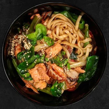 Der perfekte Sattmacher. Unser Lachs udon ist vielseitig verwendbar, leicht verdaulich und reich an Kohlenhydraten. Ideal als Beilage oder Basis für Gerichte.