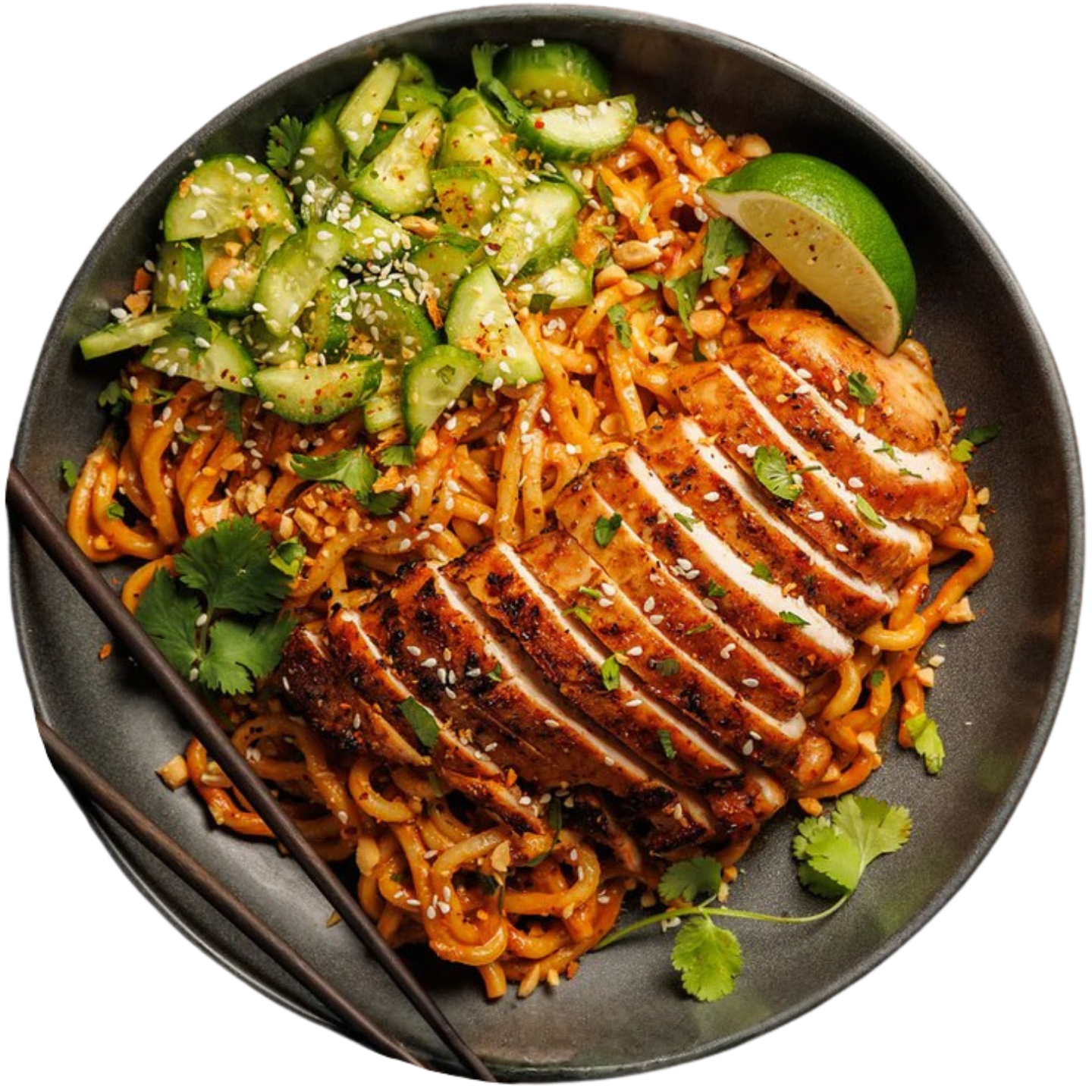 Gebratenen Nudeln mit knusprigem Huhn