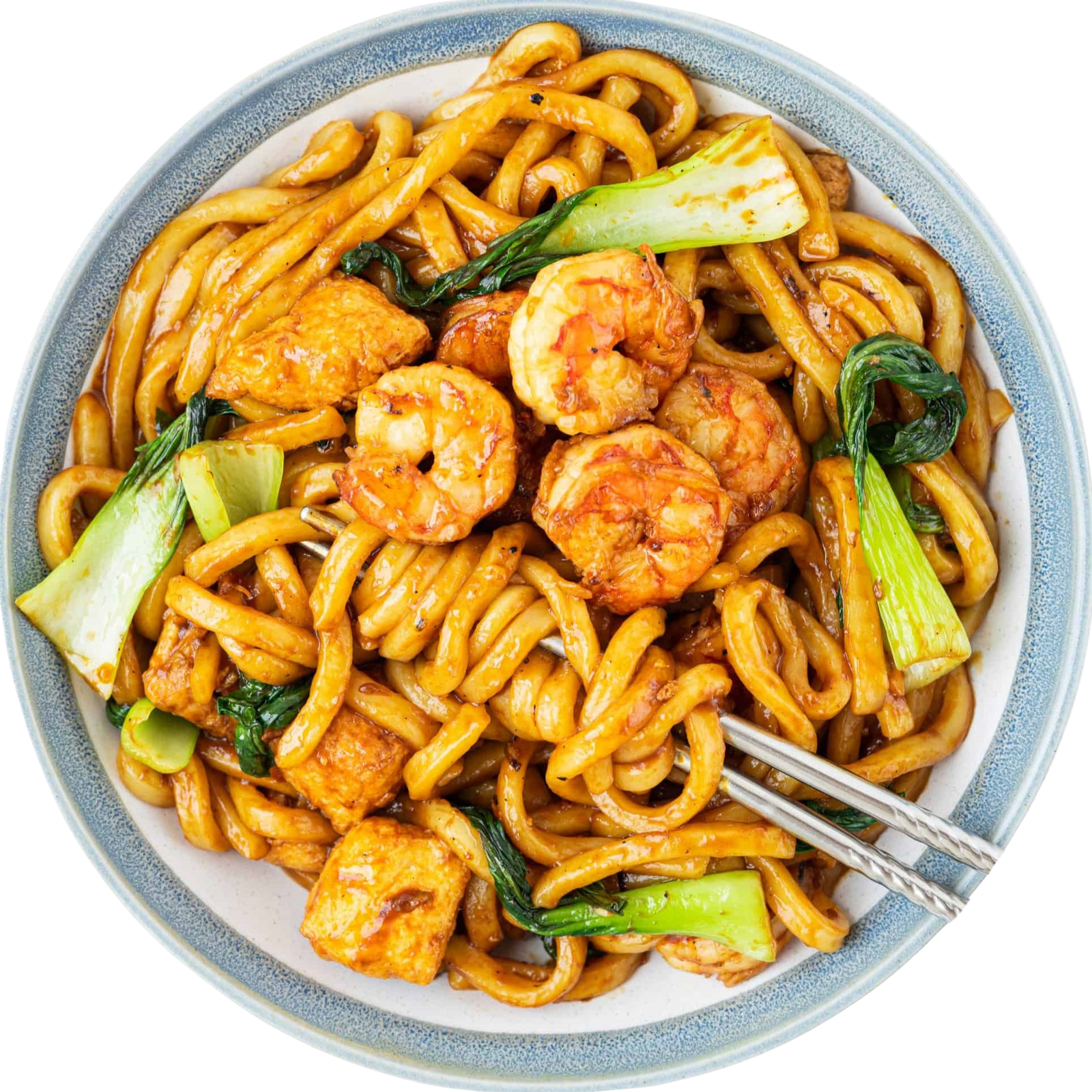 Gebratenen Udon mit Garnelen