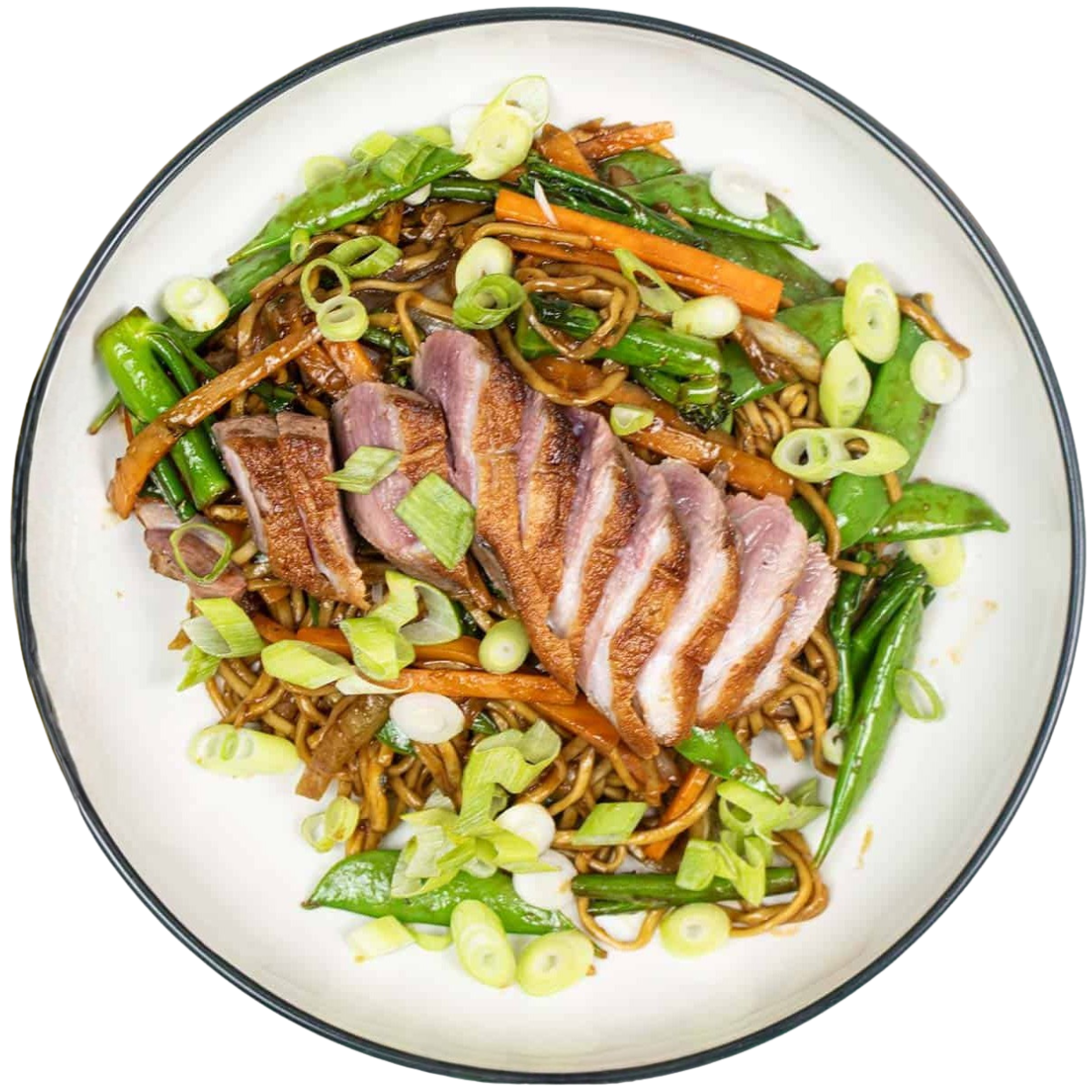 Gebratenen Nudeln mit knuspriger Ente